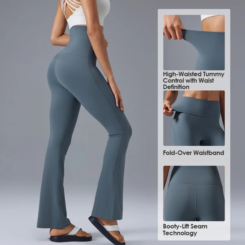Comfortable Slimming Fit High Waist Flare Gym Fitness Pants Nude Feel Women's Sports Yoga Leggings with Foldable Waistband